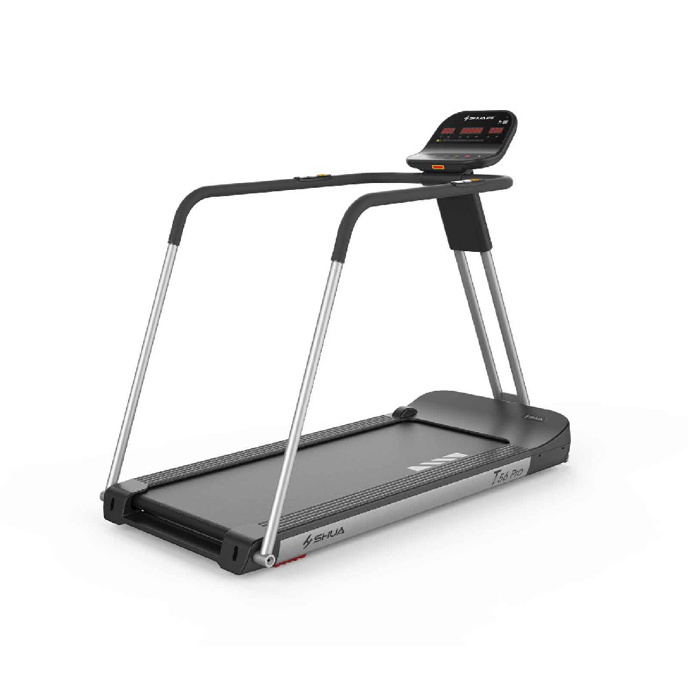 主要功能 跑步训练,心肺耐力训练1、速度范围:0.5~14km/h、倒走0.5~3km/h2、电机参数:无刷马达;额定功率 1.5CHP(1100w);3、输入功率:1150w4、减震系统:硅胶减震5、跑台尺寸:4801200mm6、跑板规格:厚度 18mm7、跑带规格:厚度 t1.6mm8、主要管材规格:立柱¢38t1.5mm 圆管;主车架 5025t1.5mm 矩形管9